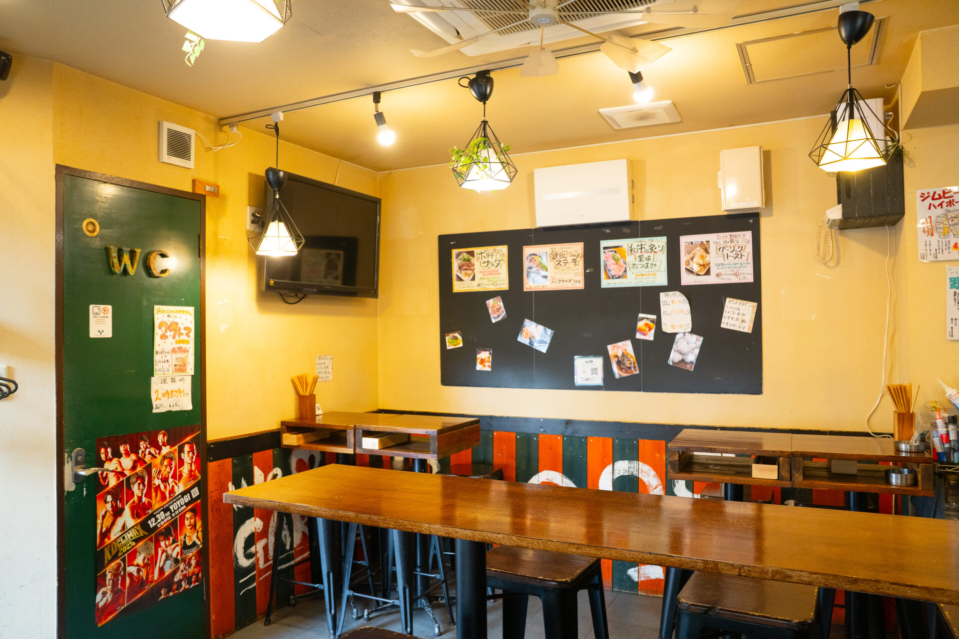 店内は、気軽に立ち寄れるカウンター席とゆっくり食事を楽しめるテーブル席をご用意しています。仕事帰りの一杯や友人との食事、少人数の飲み会から団体利用までさまざまなシーンでご利用いただけます。